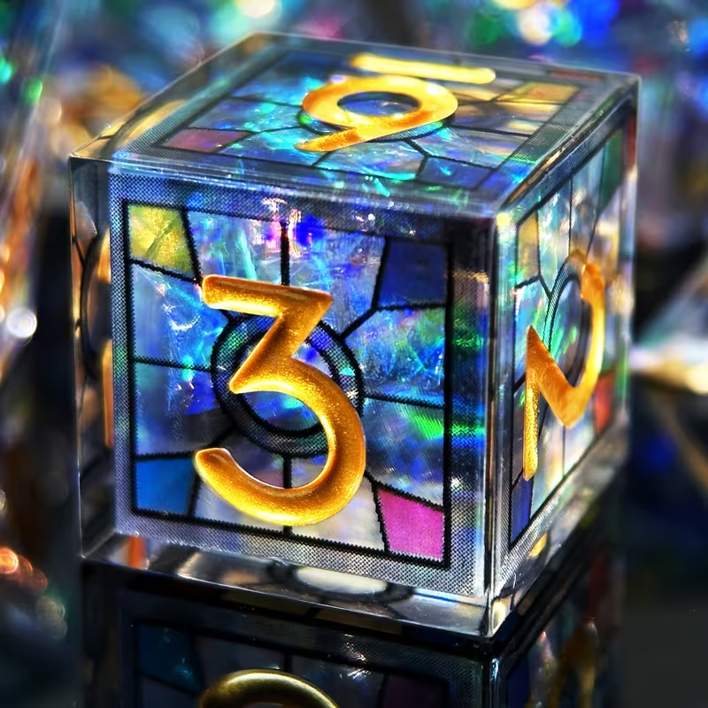 Ces dés polyédriques premium combinent une esthétique spectaculaire et une qualité de fabrication exceptionnelle. Leur résine double couche crée un effet visuel unique qui capte la lumière et révèle des nuances subtiles à chaque lancer.